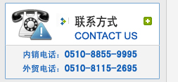 內銷電話:0510-88559995 88559996 聯系人:華經理 外貿電話:0510 8115 2695 聯系人:楊小姐 郵編:214112